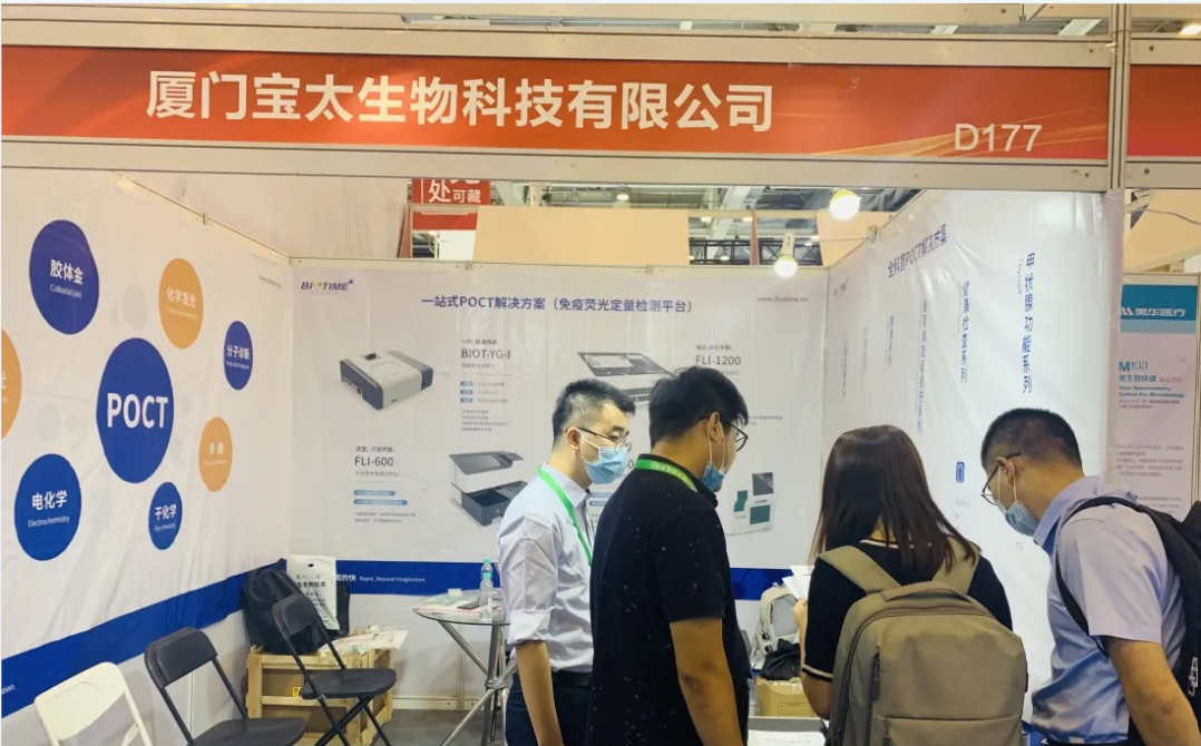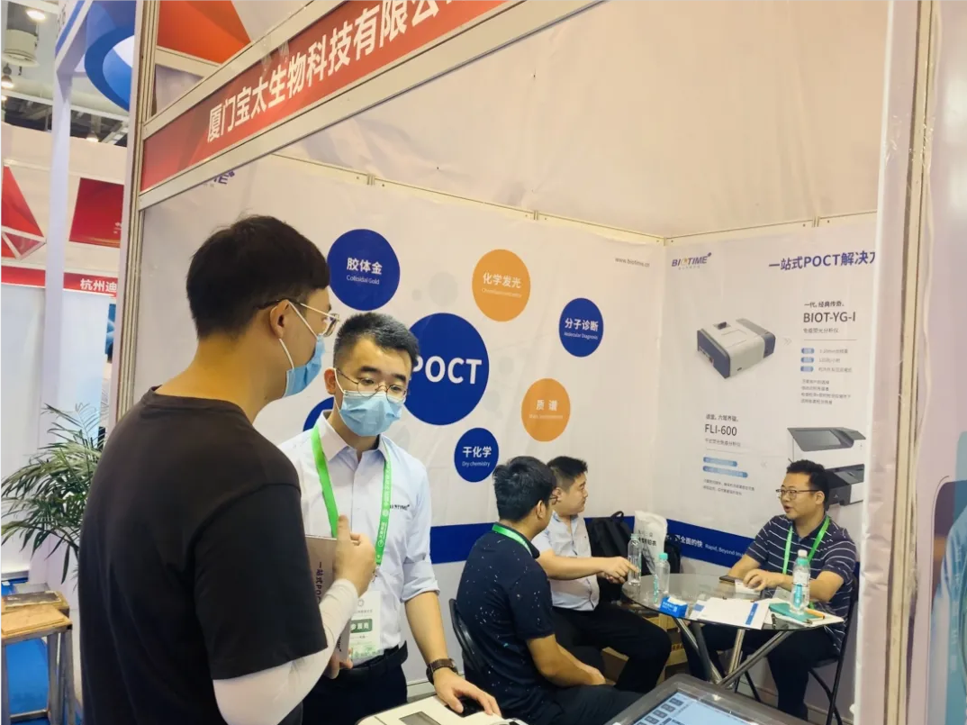 展會(huì)現(xiàn)場(chǎng),快速檢測(cè)(POCT)裝備技術(shù)分會(huì)王清濤會(huì)長(zhǎng)帶領(lǐng)參觀團(tuán)蒞臨寶太生物展臺(tái)進(jìn)行指導(dǎo)工作,并給予了寶太生物創(chuàng)新產(chǎn)品高度的肯定。同時(shí),寶太生物D177展位承接了POCT實(shí)操培訓(xùn)及考核工作,讓醫(yī)療從業(yè)者POCT操作人員直接動(dòng)手操作寶太生物熒光免疫定量分析儀,現(xiàn)場(chǎng)感受POCT的方便、快捷。